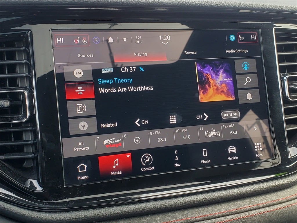 Dodge 2025 Durango R/T Plus 115V Auxiliary Power Outlet, 7 & 4 Pin Wiring Harness, 9 Speakers, Adaptive Cruise Control w/Stop, Apple CarPlay/Android Auto, Auto High Beam Headlamp Control, Auto-Dimming Exterior Driver Mirror, Auto-leveling suspension, Automatic temperature control, Black Roof Rails, Blind Spot w/Trailer Detection, Class IV Receiver Hitch, Dual Remote USB Port - Charge Only, Exterior Mirrors w/Heating Element, Exterior Mirrors w/Memory, Exterior Mirrors w/Supplemental Signals, Floor Console w/Leather Armrest, Front dual zone A/C, Full Speed Forward Collision Warning Plus, Fully automatic headlights, Garage door transmitter, Gloss Black Exterior Mirrors, Heated front seats, Heated Second Row Seats, Heated steering wheel, Illuminated entry, Integrated Roof Rail Crossbars, Leather Trimmed Bucket Seats, Leather Wrapped Door Panels, LED Auxiliary Low Beam & Turn Signal, Navigation System, Outside temperature display, ParkView Rear Back-Up Camera, Power 6x9 Multi-Function Foldaway Mirrors, Power 8-Way Driver Memory 8-Way Passenger Seats, Power driver seat, Power Driver/Passenger 4-Way Lumbar Adjust, Power Liftgate, Power Sunroof, Power Tilt & Telescopic Steering Column, Quick Order Package 22T R/T Plus, Radio: Uconnect 5 Nav w/10.1 Display, Radio/Driver Seat/Mirrors Memory, Rain sensing wipers, Rear Load Leveling Suspension, Red Accent Stitching, Remote keyless entry, Sport steering wheel, Telescoping steering wheel, Tilt steering wheel, Trailer Brake Control, Ventilated Front Seats, Wheels: 20 x 8.0 Fine Silver. CARFAX One-Owner. Clean CARFAX. 4D Sport Utility White Knuckle Clearcoat HEMI 5.7L V8 Multi Displacement VVT 8-Speed Automatic AWD